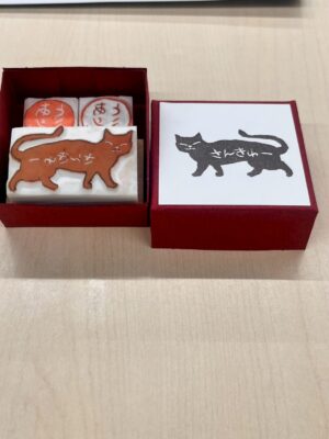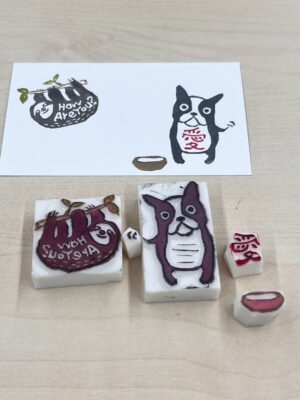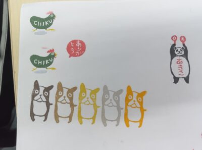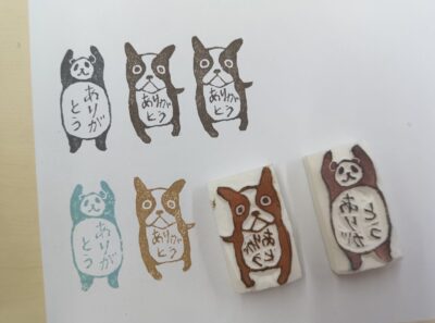 今回は犬と猫のはんこを彫ってぽち袋に捺しました。