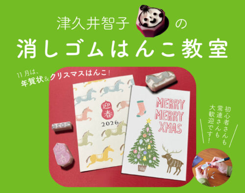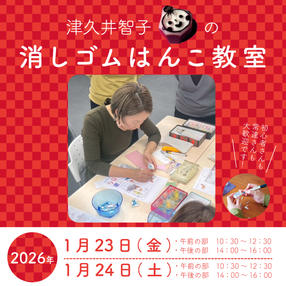 津久井智子先生の2026年1月の消しゴムはんこ教室のご予約を、ヒノデワシオンラインストアより受付中です!!