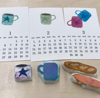 (回によっては捺す素材を買い足しできます。ミニカレンダーは毎年人気です。)